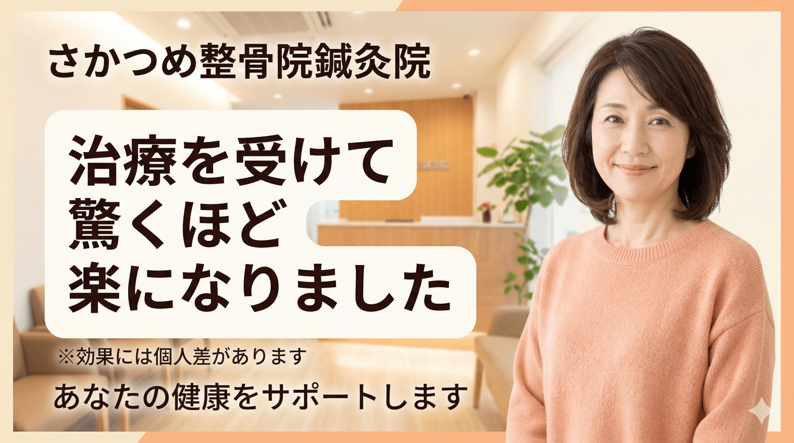 新潟市、秋葉区、新津で肩こり、腰痛でお困りなら、さかつめ整骨院鍼灸院へ。みなさまの気持ちに寄り添い、丁寧な問診、治療をさせていただく整骨院鍼灸院です。