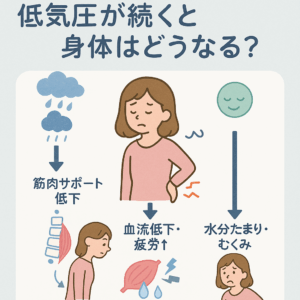 本ブログでは、梅雨時期に腰痛が悪化する メカニズム と日常生活で取り入れやすい 対策法 について解説します。