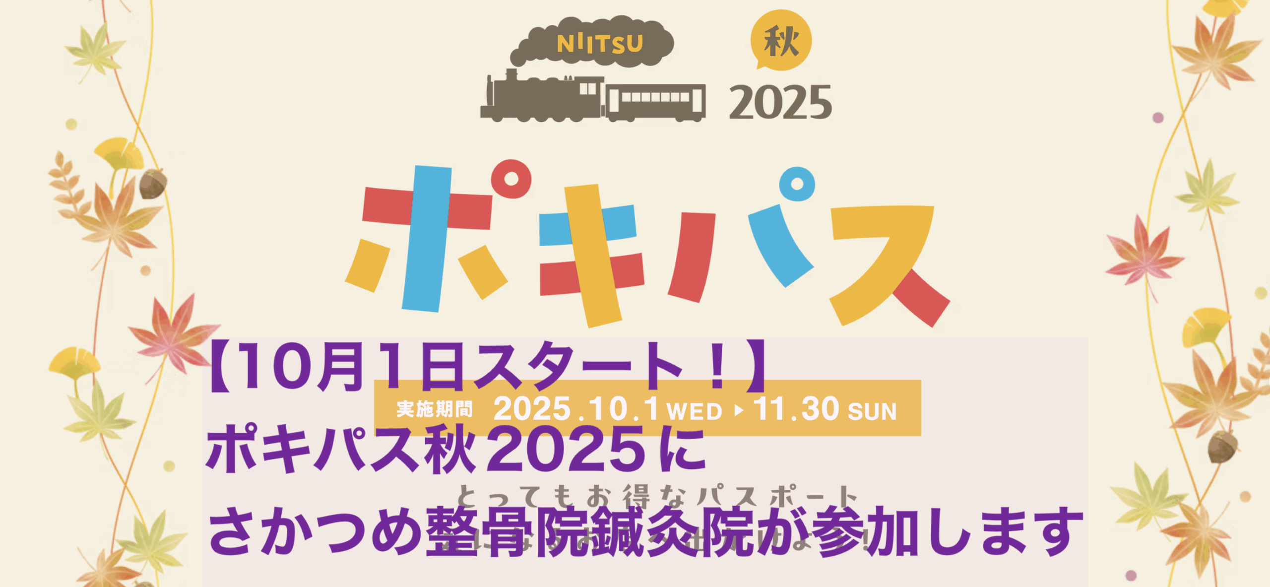 2025年10月1日から11月30日まで開催される「NIITSUポキパス2025 秋」に、さかつめ整骨院鍼灸院も参加いたします。