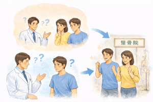 「整形外科と整骨院、どちらを選べばよいか分からない」「今の治療方法で良いのか不安」といったご相談も承っています。