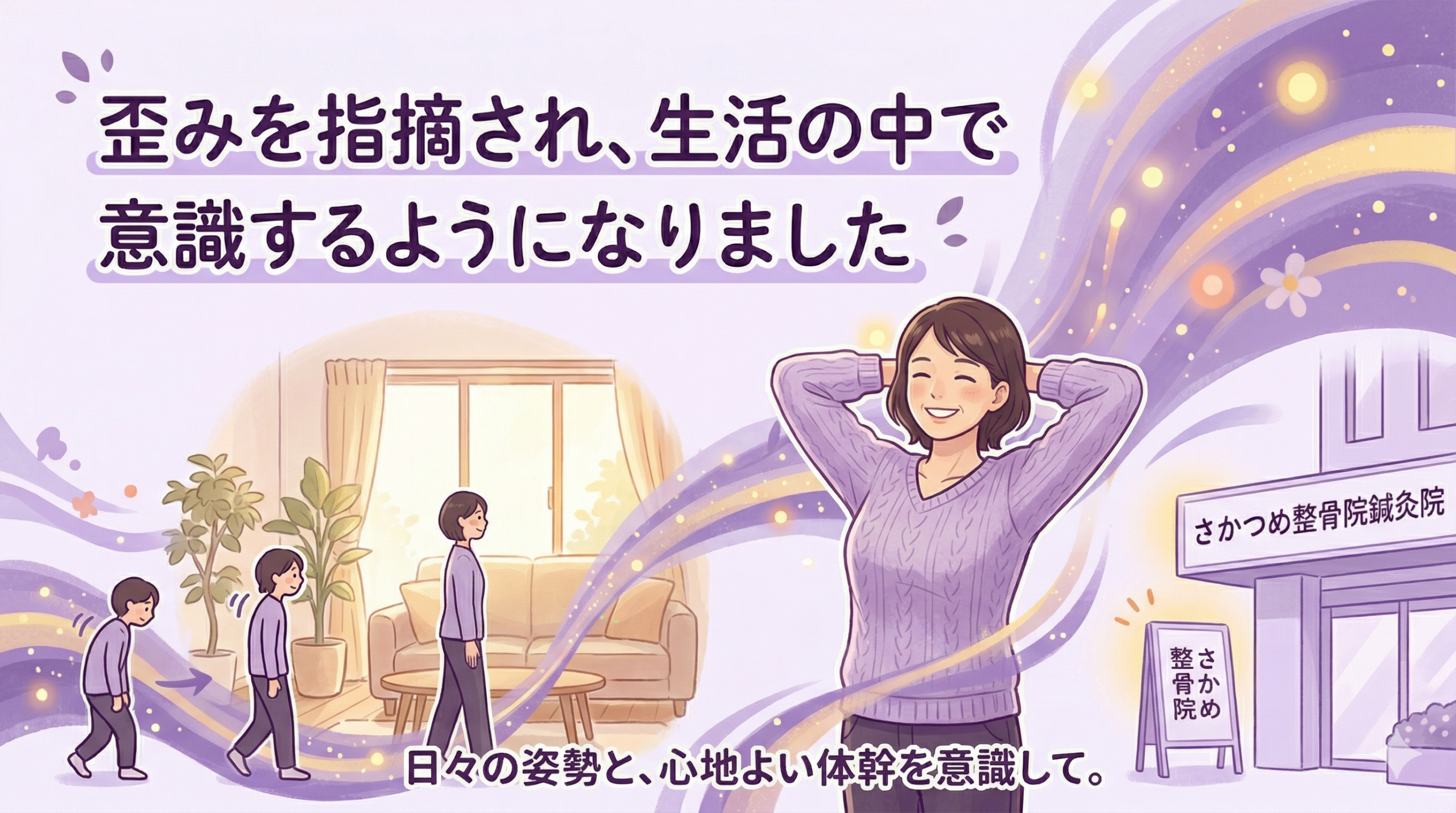 「歪みを指摘され、生活の中で意識するようになりました」という言葉がとても印象的でした。