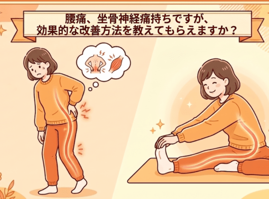 腰痛、坐骨神経痛持ちですが、効果的な改善方法を教えてもらえますか?